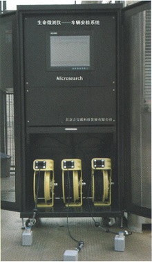 MicroSearch 是一項專業(yè)技術(shù)產(chǎn)品。它由工控機(jī)、控制主機(jī)、觸摸屏、機(jī)柜、電纜軸、空調(diào)、傳感器和數(shù)據(jù)電纜組成。無論是小型汽車、裝滿貨物的貨車還是大型拖車,只要將2個傳感器置于車上橫梁,3個傳感器放置在地上時,就可判斷出車內(nèi)或貨物內(nèi)是否有人,無需卸貨進(jìn)行全車檢查。該系統(tǒng)通過傳感器感應(yīng)車內(nèi)人的心跳動傳到車輛框架上所產(chǎn)生的微小的運(yùn)動或顫動來偵測生命存在,系統(tǒng)以這種振動為基礎(chǔ)進(jìn)行檢測分析,僅需幾秒或幾十秒的時間即可判斷車輛是否能夠放行或者需要做進(jìn)一步搜查。